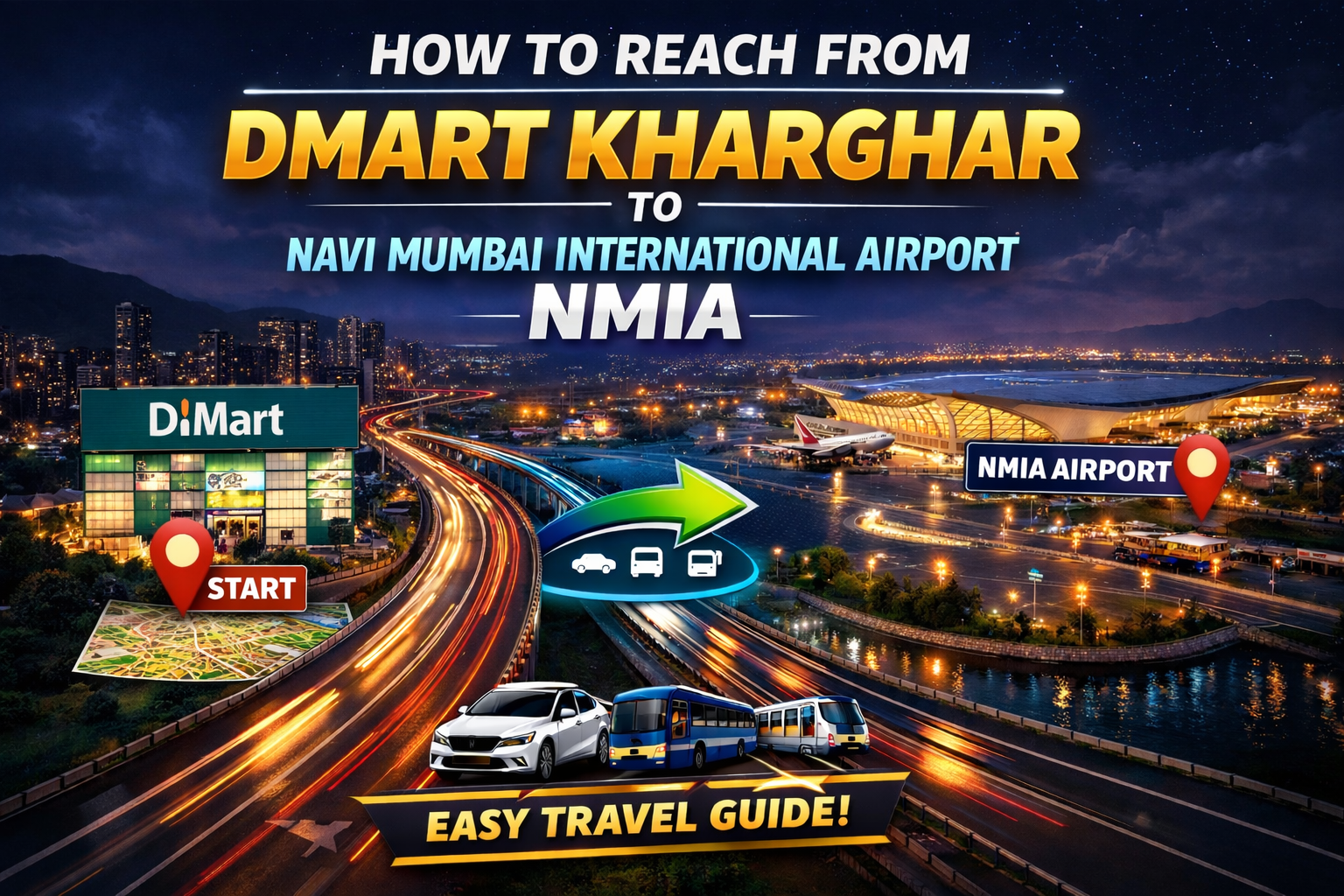 How to Reach From DMart Kharghar to Navi Mumbai International Airport (NMIA)