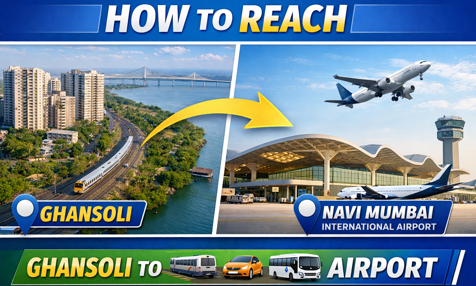 Updated: 12 January 2026 (IST) Reaching Navi Mumbai International Airport from Ghansoli is easy by bus and car. NMMT and BEST