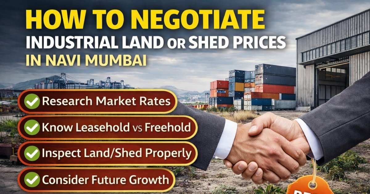 If you want to negotiate industrial land or shed prices in Navi Mumbai properly, do not negotiate only on the