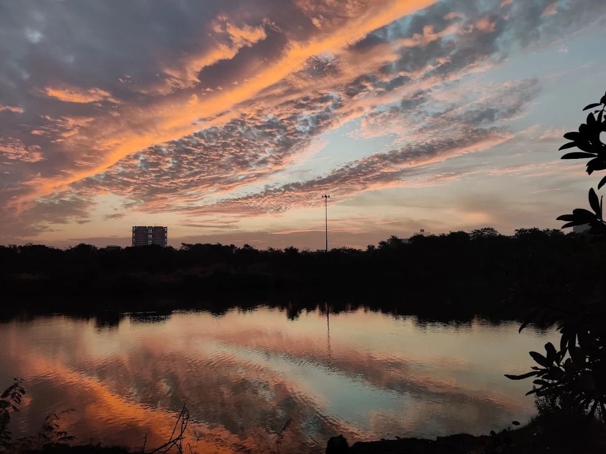 Many sunset points exist in Navi Mumbai, but Jewel of Navi Mumbai has a special advantage. The open lake surface reflects the sky colors beautifully, which makes the entire view more dramatic.